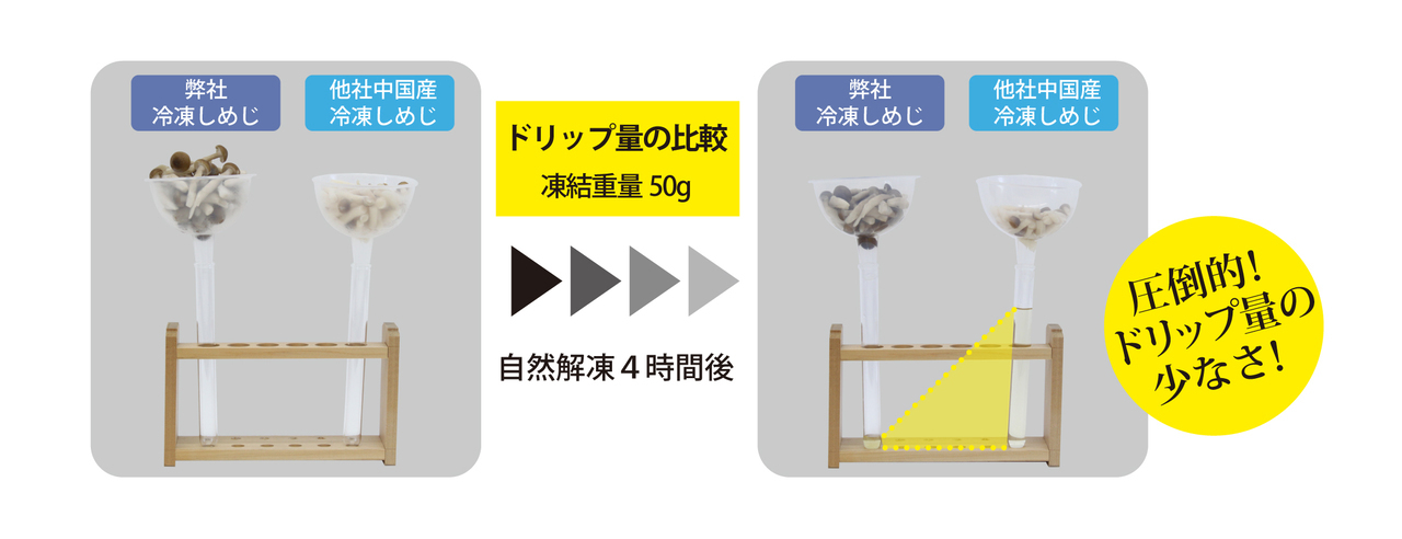 ドリップの量が少ないので、生鮮キノコのような美味しさと歯ごたえを再現。