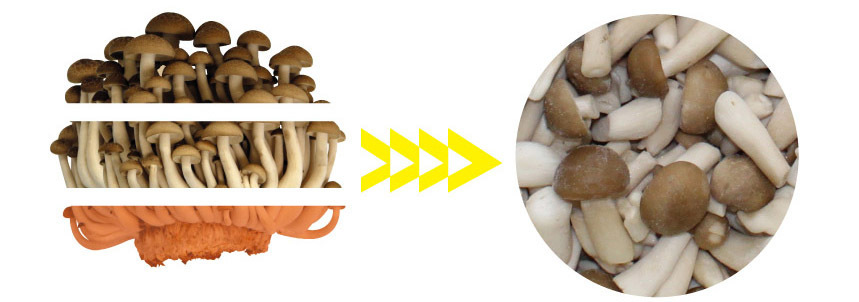 独自の製法で急速凍結されたドリームマッシュの「冷凍キノコ」は、ドリップが少なく歯ごたえの良い冷凍きのことして好評です!凍結作用によりうま味の増した「冷凍キノコ」は濃厚な香りを醸し出します。