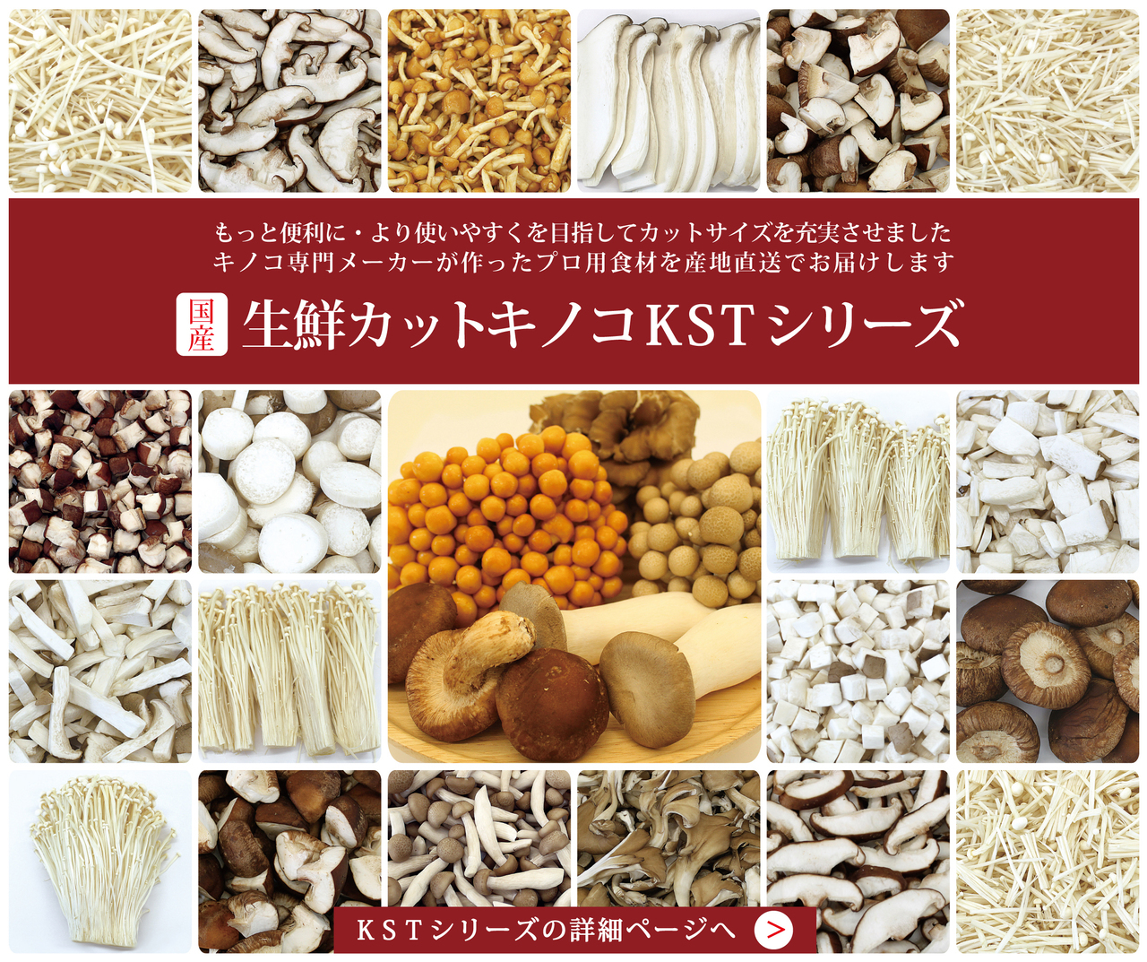 カットキノコKSTシリーズは、使用される皆様のニーズにお応えするべく、豊富なカットバリエーションを取り揃えております。キノコの食感や活かしたメニューや飲み込む力が弱くなった方向けのメニューなど幅広くご使用頂けます。